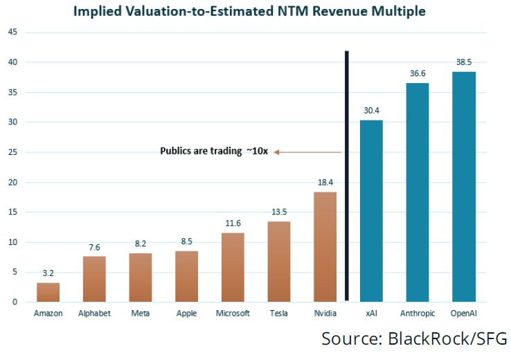 AI is likely to lift economic productivity over time, but the market path from here will almost certainly be uneven rather than a straight upward trend. Heavy AI capex is set to weigh on free cash flow in 2026, and much will depend on how long investors are willing to wait for that spending to translate into convincing gains in profitability and return on investment. Today’s excess looks most pronounced in private markets, where a handful of leading large language model platforms command the richest valuations and many standalone LLM businesses are burning cash well in excess of what their operations generate. By contrast, listed AI beneficiaries, though hardly cheap, tend to be priced with at least some reference to observable earnings and cash flows, leaving the most significant bubble risk in late-stage private valuations rather than in the broad public equity market.
