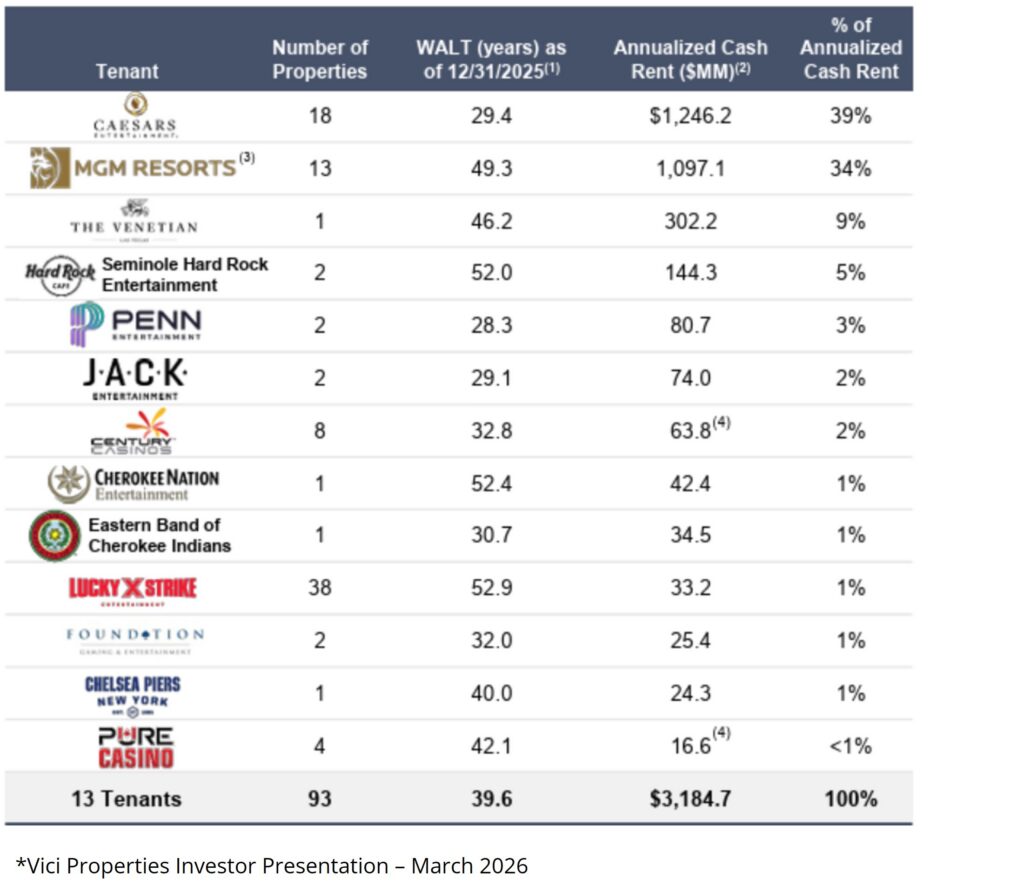 Vici Properties was the top contributor to the Q1 return, with a +7.5% increase. To be clear, we sold our position prior to the oil-driven market weakness. The reason for our sale was company specific, as one of Vici’s largest customers, Caesars Entertainment (39% of Vici’s rental revenue in 2025), has experienced weaker-than-expected fundamental performance in some of its Vici-owned properties. We have become increasingly concerned that this tenant will seek some form of rent relief, thereby lowering the revenue growth at Vici. More broadly, the Vici business model does have some defensive characteristics. Vici’s customers are generally experience-oriented, and despite the discretionary nature of that business, the rent payments to Vici are not considered at risk in a weaker economic environment. Case in point, the company’s rent revenue was virtually undisturbed during the COVID pandemic when many of Vici’s customers were closed, highlighting the critical nature of the physical property that Vici owns and rents to its customers. However, the company’s status as a REIT does have its risks in today’s environment. Reits, including VICI, hold significant debt on their balance sheets, making them especially sensitive to changes in long-term interest rates. Reits are also considered long-duration assets similar to long-term bonds, as their rental streams are generally very steady over time.