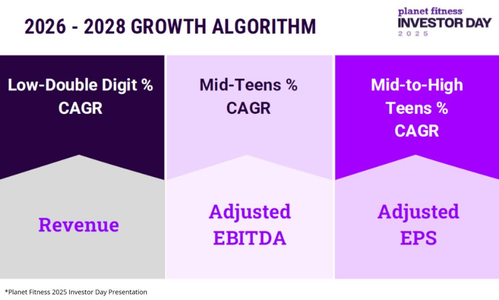 Planet Fitness was another one of our top detractors to the Q1 2026 return, decreasing 31.4%. The stock performed poorly on weaker-than-expected FY2026 guidance on revenue and EBITDA. The company cited poor weather conditions in many of its regions during the quarter, slower new unit growth in 2024-2025, and the sale of some of its company-owned stores to a franchisee. The reasons given for the guidance are reasonable in our opinion, but the stock acted poorly due to poor communication. For reference, the company held an analyst day in November of 2025, stating that revenue growth would be in the low double-digit range, EBITDA growth would be in the mid-teens range, and eps growth would be in the mid to high teens range (see chart below). The 2026 guidance was below these ranges, suggesting that business conditions have changed dramatically over the past few months.